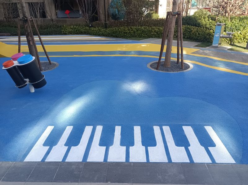 游乐空间布置不同类型趣味设施:创意听筒、碗转椅、敲击音乐、休憩区、攀爬极地及运动地形一应俱全。地垫彩绘选用明亮色彩,色彩浓烈的暖色调与沉稳的冷色搭配,打造丰富打造视觉效果。