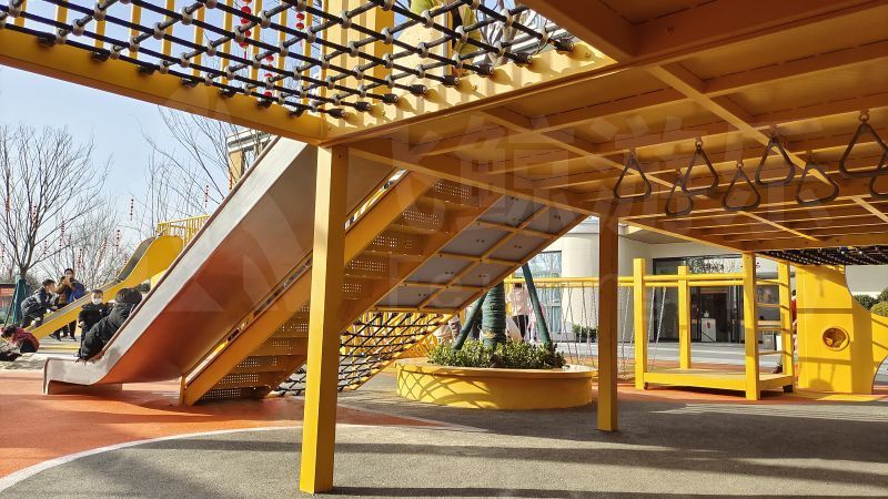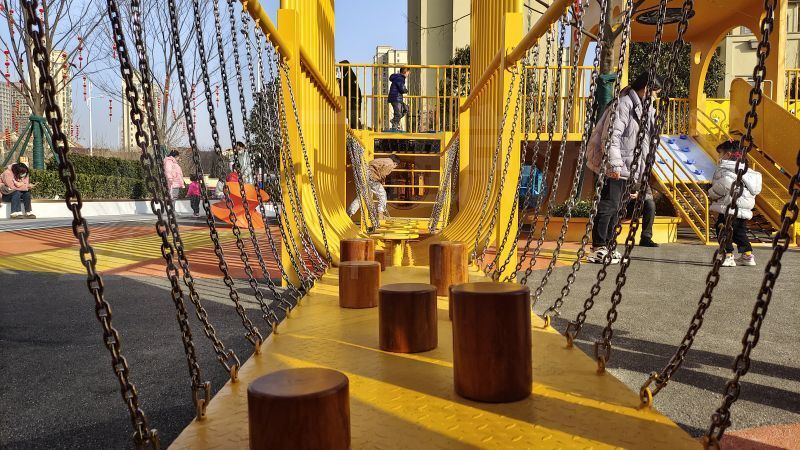 到达松鼠城堡需要一番冒险,小心穿过勇气之桥,到达松鼠城堡。河北爬网、踩盘、荡桥、眺望平台……一个个承载着特定的游戏和功能的平台,鼓励儿童在嬉戏和休息之中产生社交互动,玩乐中收获纯真勇敢协作与友情。