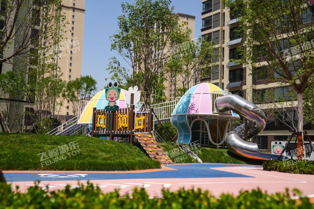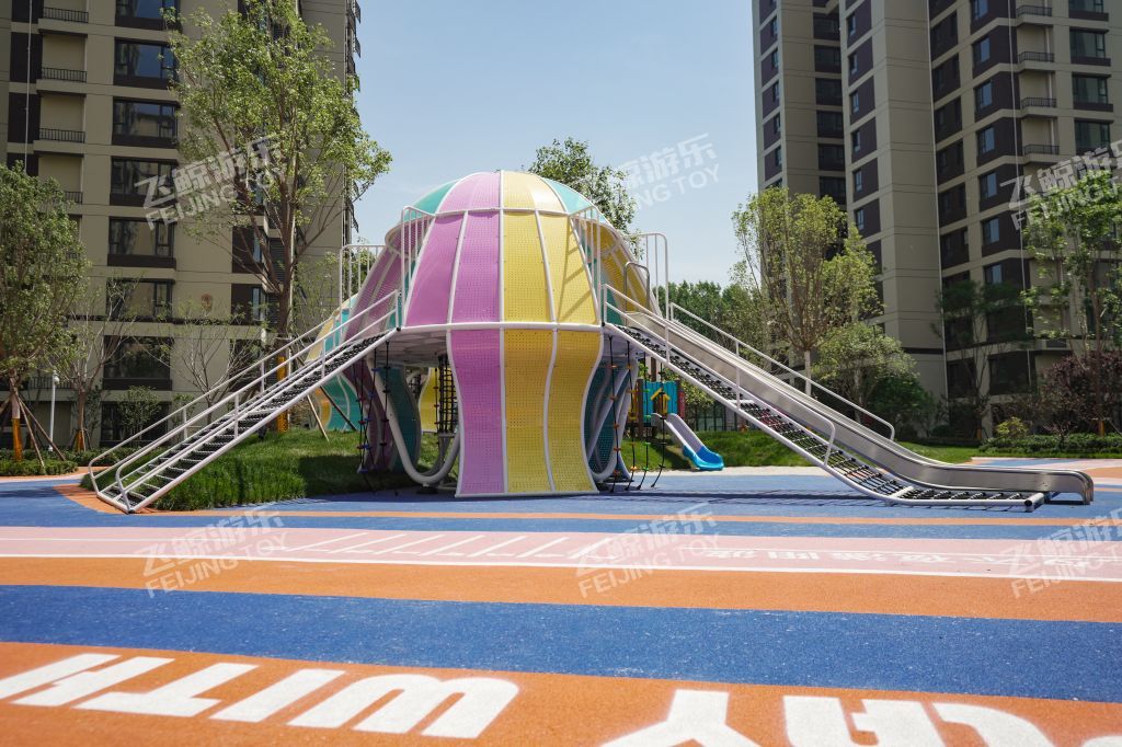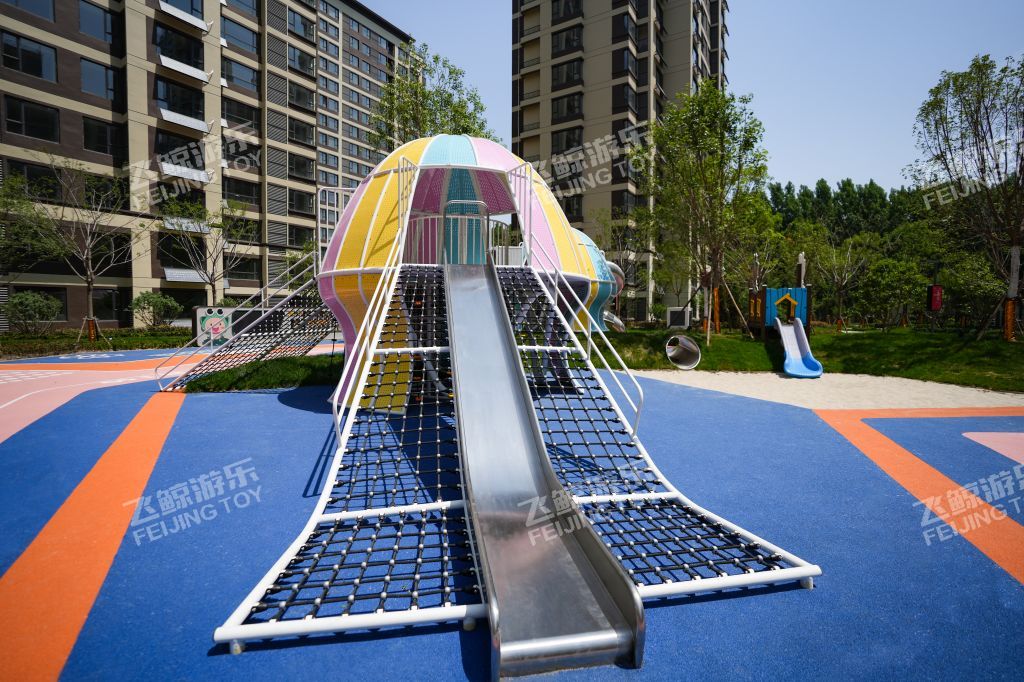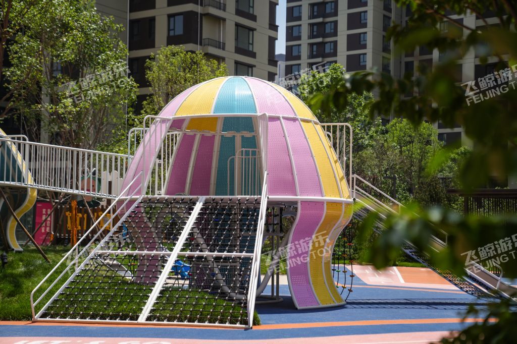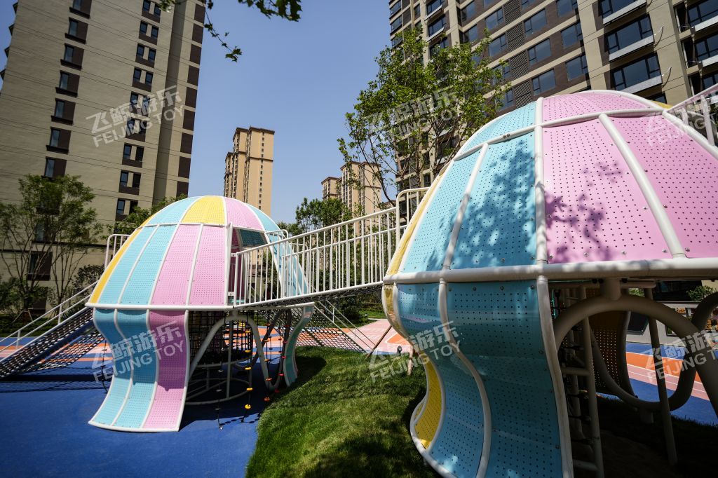精灵向导在乐园处等候着,攀登一番,走过栈道,通过窄窄的滑道,来到精灵水母的身边,与多彩水母好好互动玩乐一番。连廊触手将两只精灵水母紧紧相依偎在一起。色彩缤纷、灵动有趣的造型,为儿童创造美好童年记忆。无论哪个方向,精灵水母都对你敞开怀抱,小勇士们爬过河北爬网进入精灵水母温柔内部探索治愈一番。在隐藏的角落里,是精灵水母核心区,生产力量和快乐,在不同的设备玩乐之间,释放活力,增强小勇士的力量。曲线旋转滑梯,顺着滑梯通道,与快乐一起释放出来。结合场地地形放置钻洞设施,为儿童提供可探索可隐蔽的玩耍空间,藏在自然里的钻洞,拥有返璞归真的乐趣。 小精灵们守护在乐园里,找到他们身影,与精灵们快乐玩耍。摇摇车、河北跷跷板在摇摆之间,收获同伴互动快乐。转盘转动,快乐也环绕在四周中。益智互动景墙,能很好锻炼儿童创造能力,翻动益智块,解密密语,方块之间,创意无界。 融入精灵元素的水母乐园,为孩子们打造一个充满童趣、神秘、活力的儿童空间。飞鲸游乐致力于为儿童创造更多快乐,飞鲸人将继续加强儿童需求发掘认知,深化游乐空间规划研究,打造更多