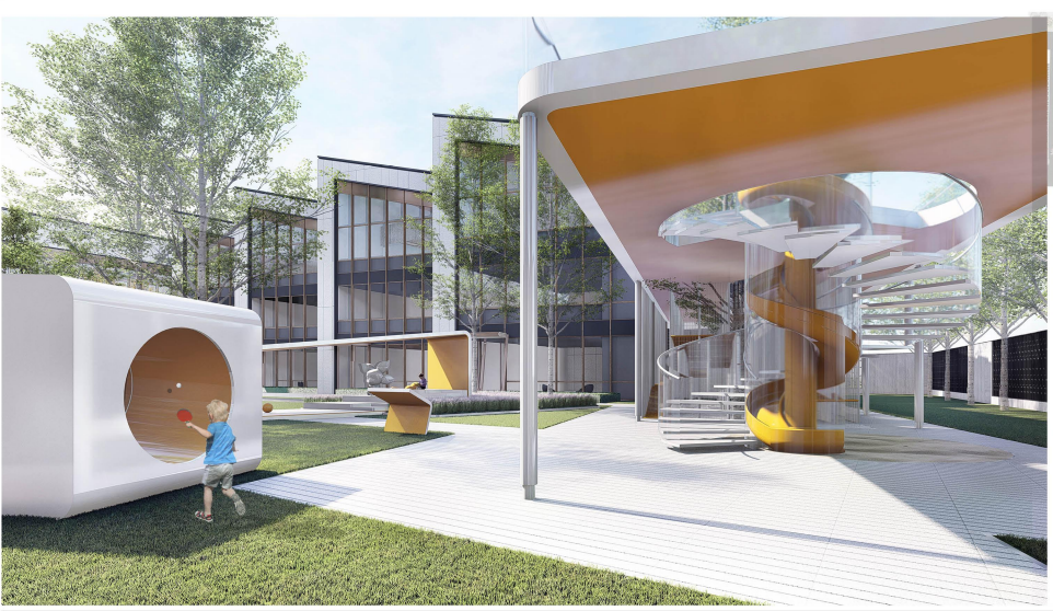 项目位于安徽省滁州市琅琊区,于城芯正脉,落峰景所在。九大商圈环伺,对望繁荣;一河三园拥绕,绿意尽收。正荣·润熙府以未来儿童的真实需求为设计出发点,打造出了一座超时代的趣味几何艺术森林幼儿园。